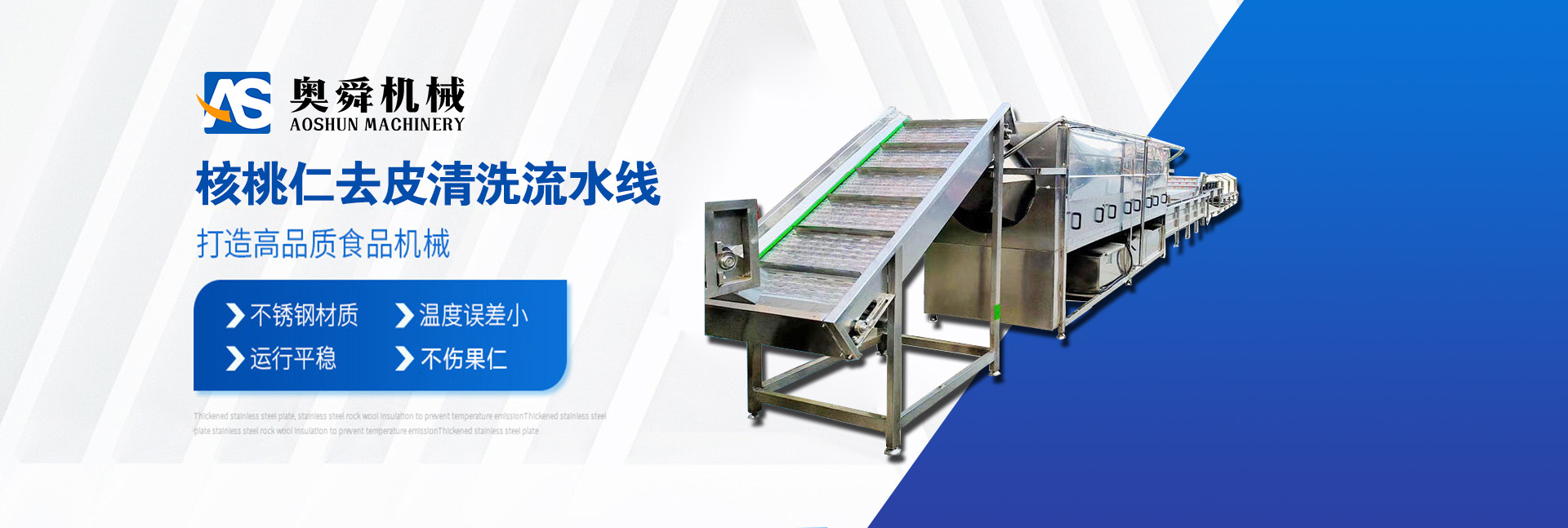 奧舜機(jī)械 【核桃仁去皮機(jī)】打破了核桃仁深加工過程中的困擾,純物理脫皮方法,專門針對核桃仁表皮的沖洗,代替了傳統(tǒng)的化學(xué)泡制去皮,使產(chǎn)品更安全放心,連續(xù)式工作,操作簡單,去皮率高、破損率低,自動(dòng)化程度高,節(jié)省人工,可配套烘干箱使用。